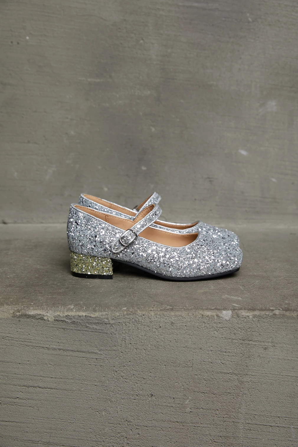 В этих туфельках есть абсолютно все, чтобы мы с полной уверенностью смогли отнести их к стилю "гламурный шик". Кожаные внутри и покрытые золотым и серебряным глиттером снаружи, на каблучке, с квадратным носиком и ремешком, как Mary Jane, они кажутся почти игрушечными. Даже не знаем, хватит ли у вас силы воли запирать их в шкафу в будние дни.