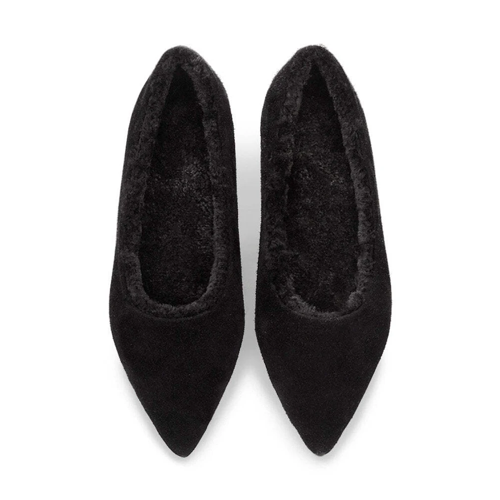 Стильные, теплые и элегантные лодочки Anais созданы для тех, кто предпочитает туфли сапогам и ботинкам в любую погоду. Мягкая замша черного оттенка, натуральный овечий мех внутри и небольшой комфортный каблук — эти туфли идеально подойдут к кашемировым платьям и голубым джинсам. А благодаря резиновой, нескользящей подошве вы всегда будете себя чувствовать комфортно на улице.