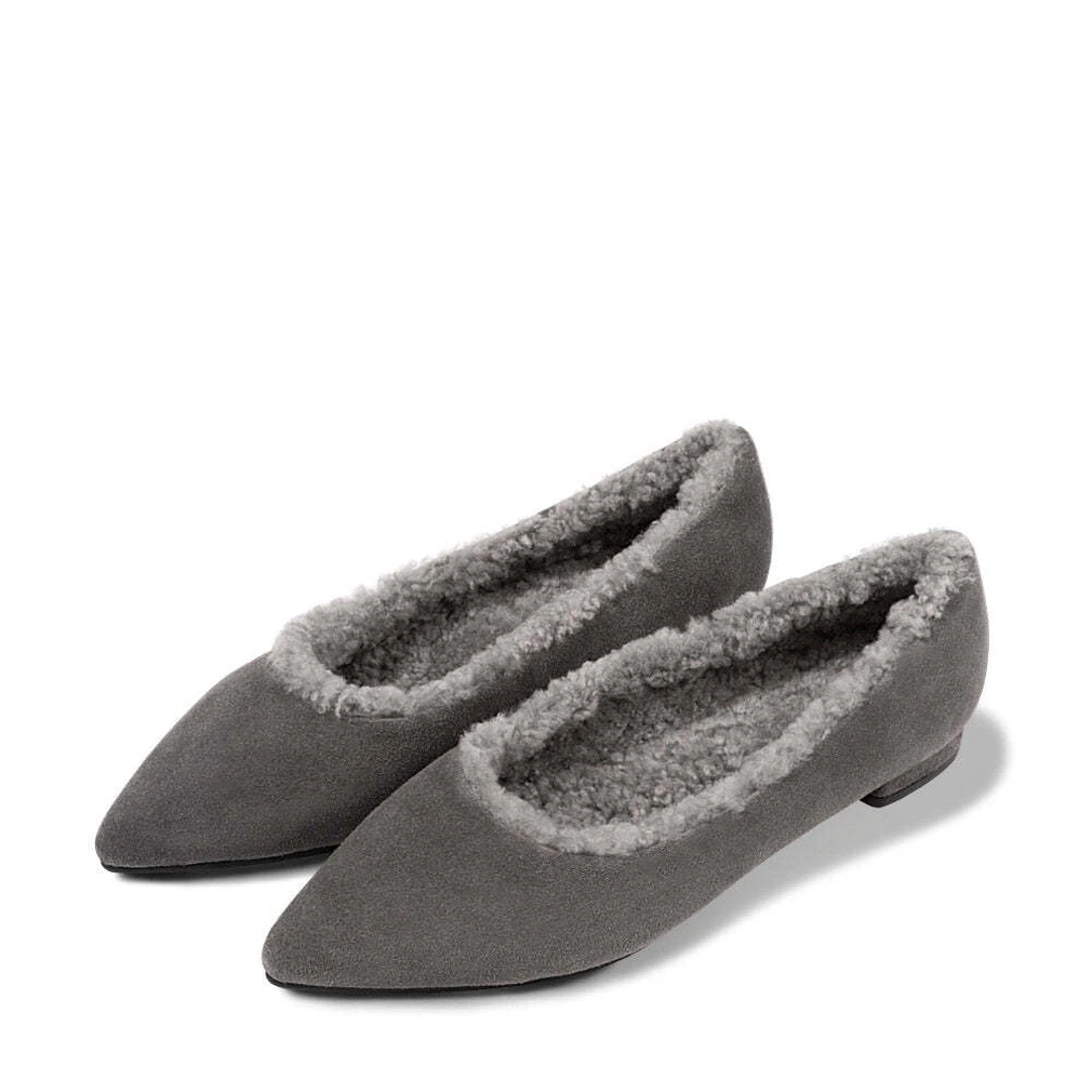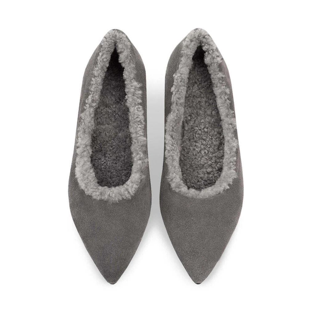 Стильные, теплые и элегантные лодочки Anais созданы для тех, кто предпочитает туфли сапогам и ботинкам в любую погоду. Мягкая замша серого оттенка, натуральный овечий мех внутри и небольшой комфортный каблук — эти туфли идеально подойдут к кашемировым платьям и голубым джинсам. А благодаря резиновой, нескользящей подошве вы всегда будете себя чувствовать комфортно на улице.