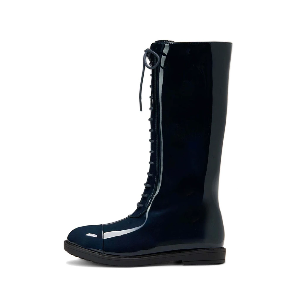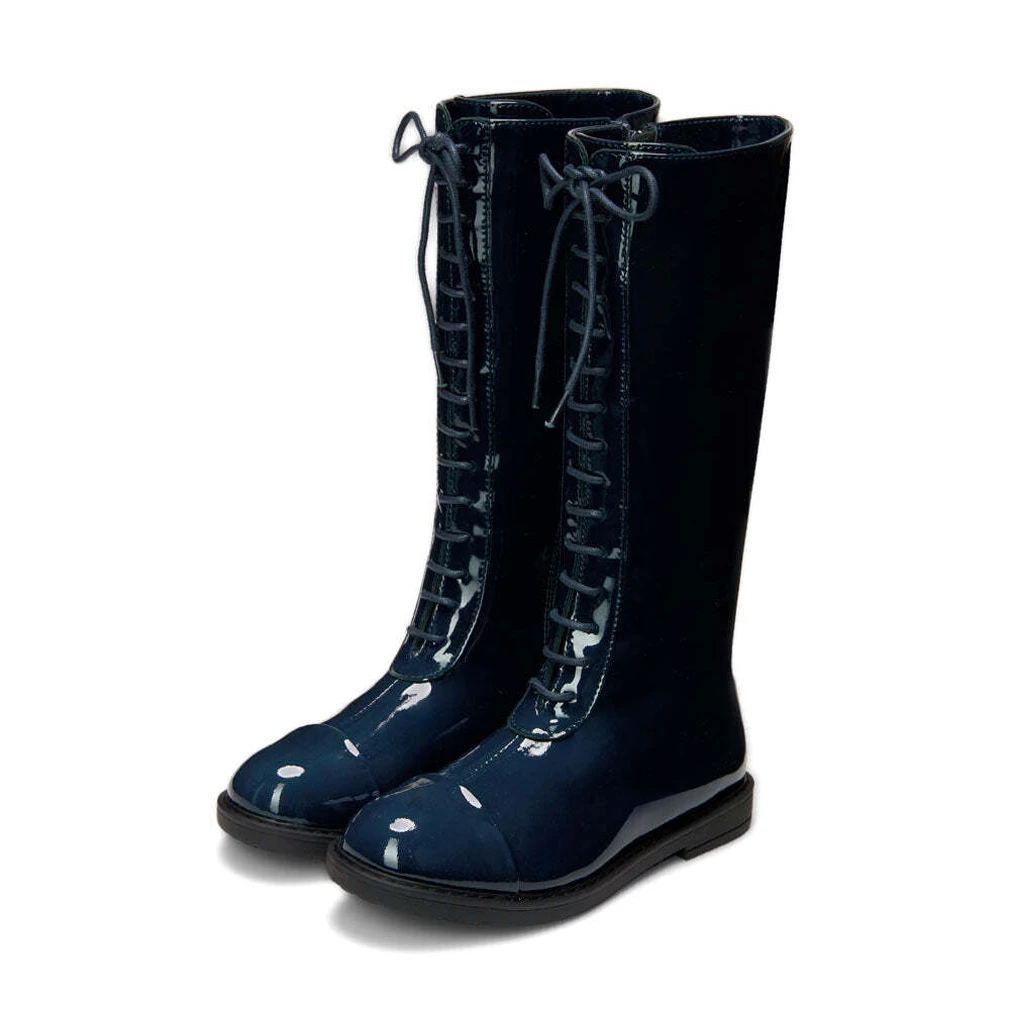 Одна из самых необычных моделей в нашей коллекции, которая, тем не менее, смотрится в ней более чем органично благодаря своему ретро звучанию. В начале прошлого века девушки обожали высокие ботинки на шнуровке, а мы пошли еще дальше и решили создать такие сапоги. И не простые, а лакированные. На самом деле шнуровка носит исключительно декоративный характер, а сбоку спрятана удобная молния. Смело носите Blair PL с платьями, скинни джинсами или узкими брюками.