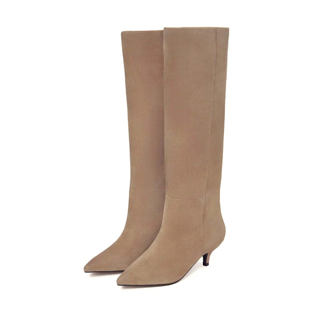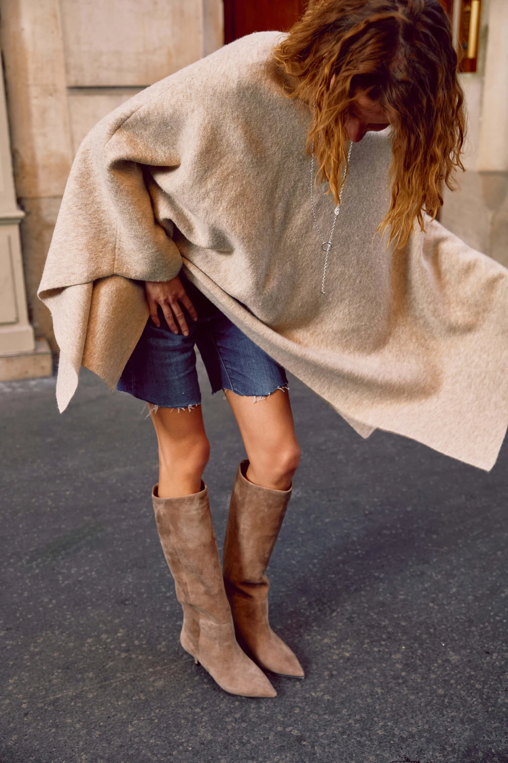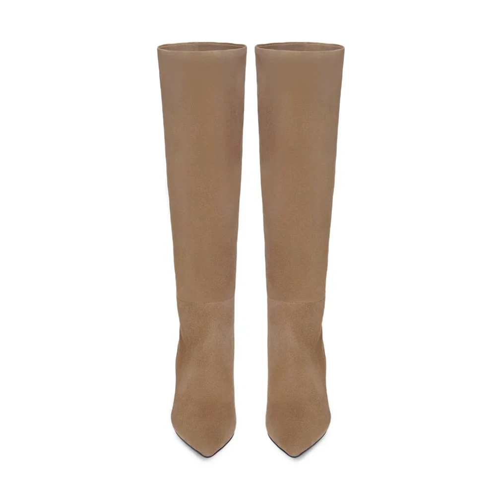 В этом сезоне мы кардинально расширили нашу коллекцию, и теперь в ней представлены высокие замшевые сапоги с удлиненным носом на небольшом каблуке-рюмочке в черном, бежевом и шоколадном оттенке. Модель Brigitte - это переосмысленная классика, которая, обычно, оказывается самой востребованной при составлении актуальных образов. Можно носить как с полной длиной, так и приспущенными, собрав в складку на ноге.