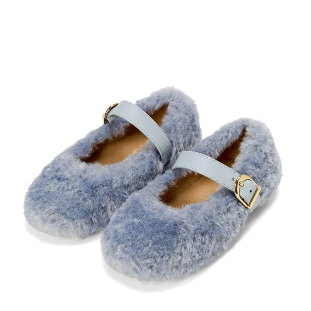 Культовая модель этого сезона — меховые туфельки Buffy. Мягкие, как тапочки, теплые и уютные, как сапожки, и невероятно красивые и модные — эти туфли точно завоюют сердца малышек этой осенью. Стильный голубой кожаный ремешок с золотой пряжкой добавляет элегантность, позволяя смело сочетать их и с джинсами, и с однотонными платьями из тонкой шерсти.