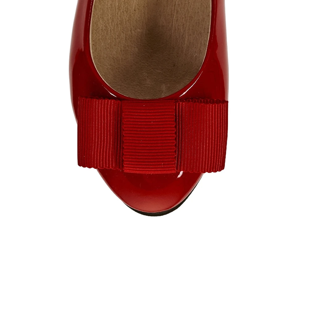 Очаровательные красные туфли Ellen сделаны из натуральной лакированной кожи и декорированы элегантным минималистичным бантом. Эти туфли станут идеальным завершением праздничного образа. Носить можно с платьями и юбками.