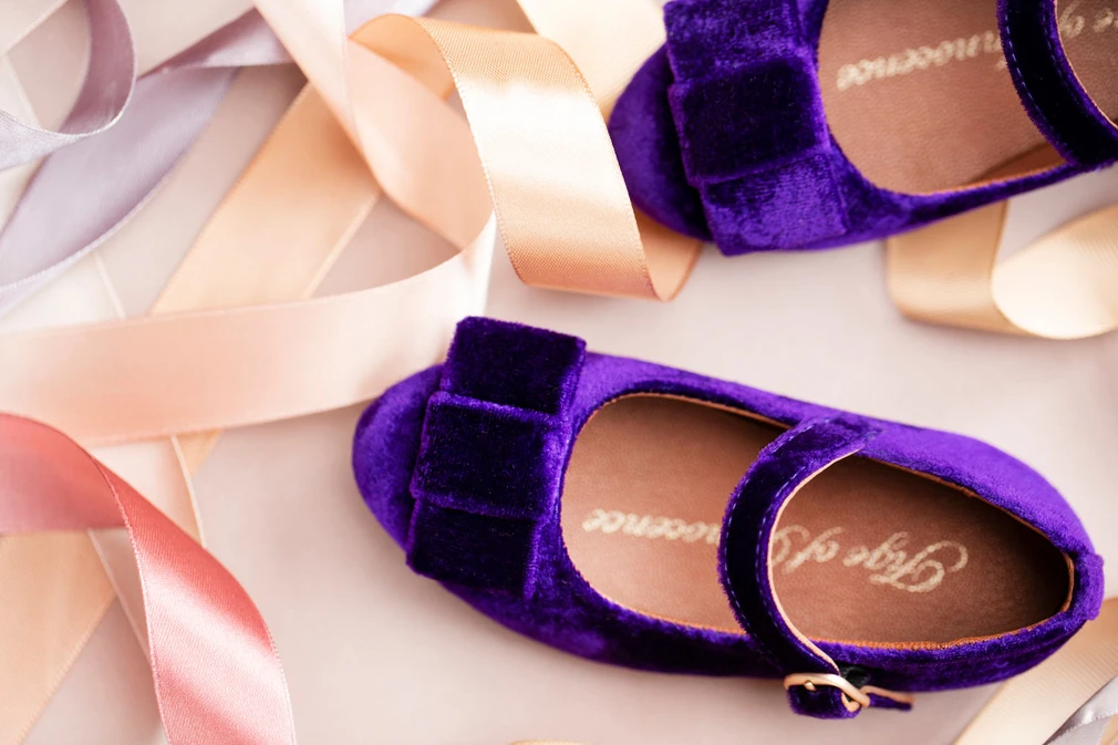 Наши классические туфельки Ellen выполнены из фиолетового бархата. Подкладка и стелька изготовлены из натуральной кожи. Торжественные и элегантные туфельки Ellen достойны «парадного выхода». Идеальные туфельки для предновогоднего посещения балета «Щелкунчик».