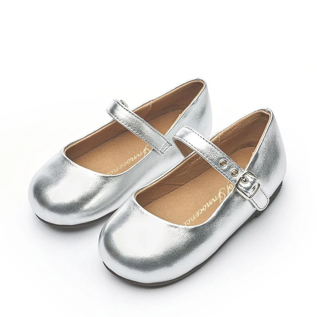 Туфельки Eva выполнены из мягкой фактурной кожи серебристого цвета. Круглый носик, достаточно глубокий вырез, классическая застежка с золотой пряжкой — в этой модели нет ничего лишнего, и при этом она очаровательно смотрится на маленькой детской ножке. Туфли прекрасно подойдут как малышкам, делающим свои первые шаги, так и девчонкам постарше. Носите наши Eva с летними платьями и белыми брюками, джинсовыми шортами и объемными блузами.