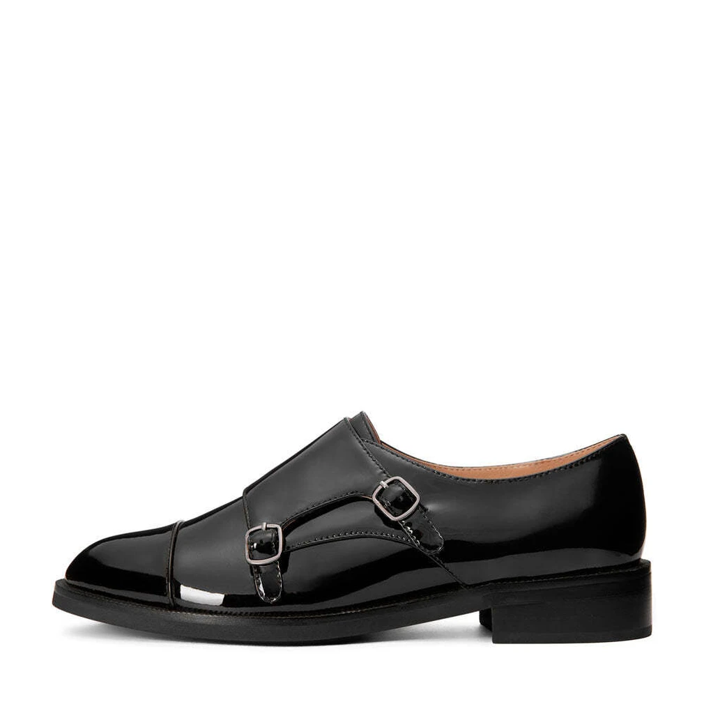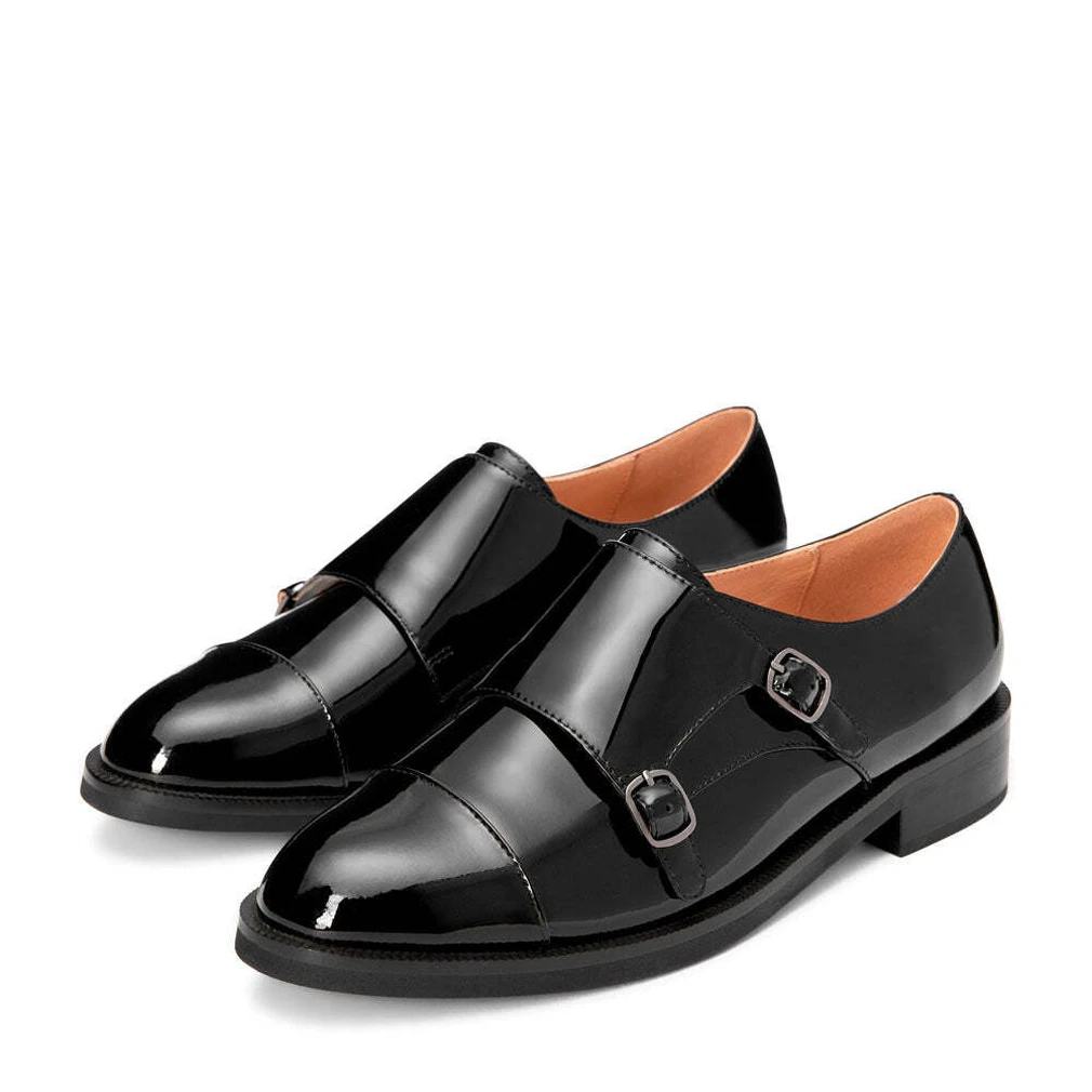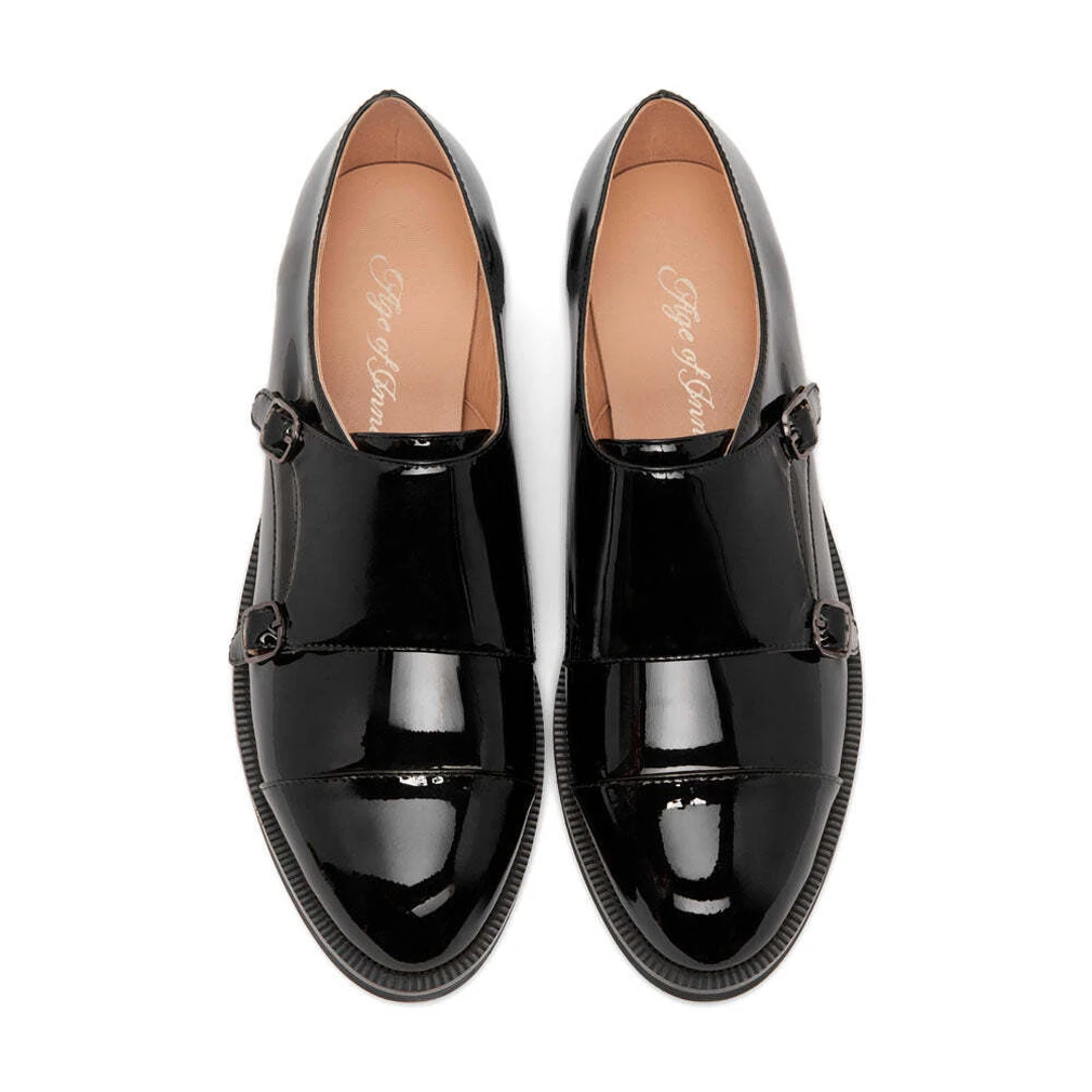 Монки из черной лакированной кожи Gabrielle напоминают об английском происхождении бренда. Любимая классическая модель туманного Альбиона отлично подойдет к “мужским” брючным костюмам с прямыми широкими или чуть зауженными, укороченными брюками. Небольшой каблук, застежка-резинка, удлиненный нос - классная модель на любое время года.
