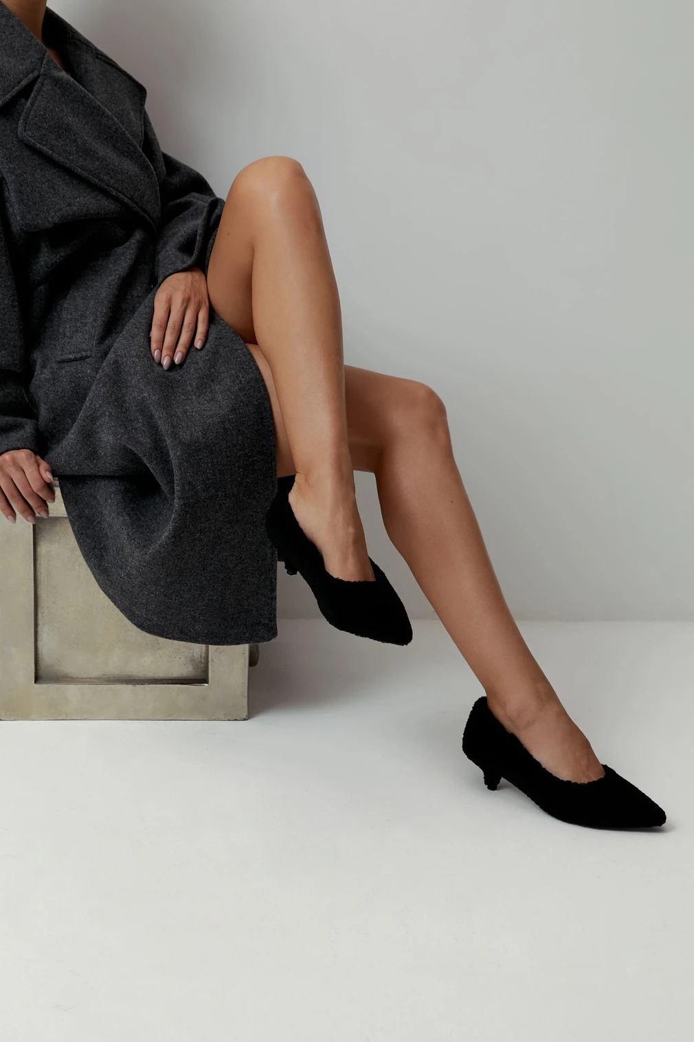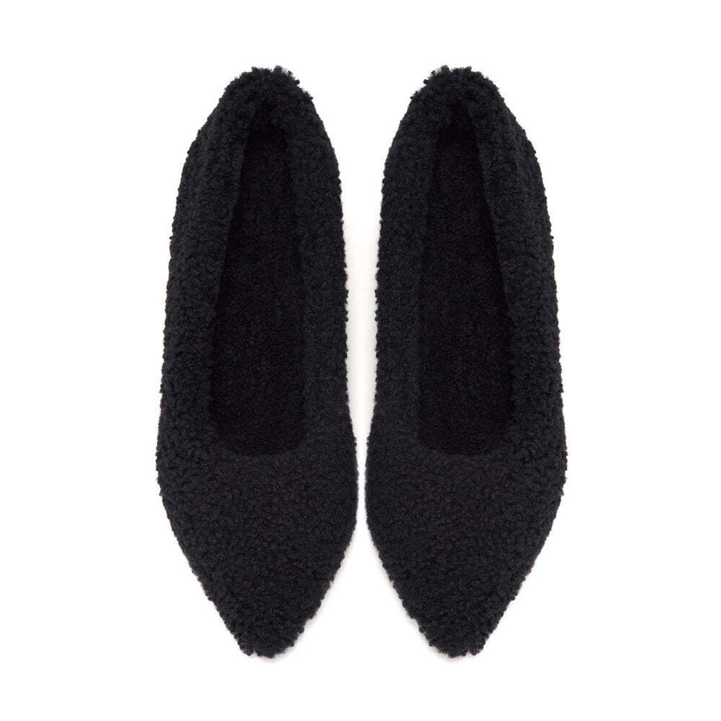 Эта модель — наша любовь с первого взгляда и прикосновения к нежному натуральному овечьему меху, из которого они сшиты. Мягкие, теплые и очень комфортные туфли плотно облегают ступню, а небольшой 4.5 см каблучок и зауженный нос добавляют им необходимую долю изысканности. В кашемировом платье и этих лодочках вы будете выглядеть бесподобно!