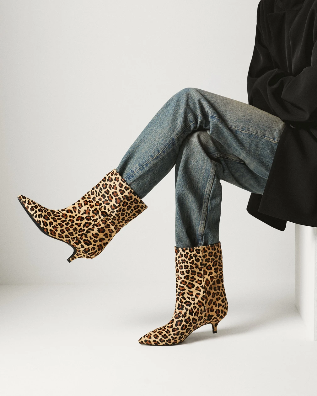 В этом сезоне мы переосмыслили наши элегантные кожаные сапоги Gina в леопардовом принте. Та же высота 3/4, тот же чуть зауженный нос и небольшой 5-ти см каблук-рюмочка, но супер эффектный анималистичный принт, приковывающий взгляды. В них можно заправить узкие брюки или джинсы, а можно объединить с длинной кашемировой юбкой цвета топленого молока.