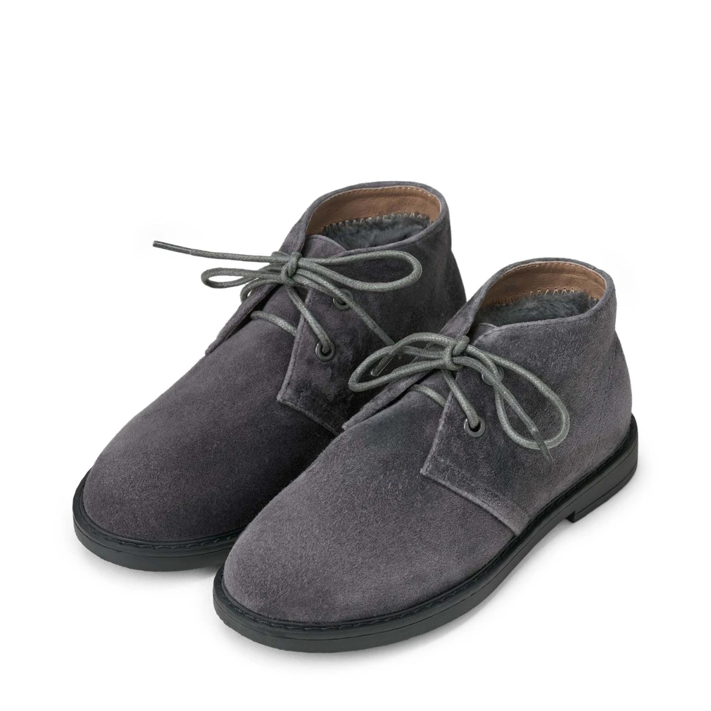 Классическая зимняя (внутри натуральный мех) модель замшевых ботинок на шнуровке, без которых невозможно представить зимний гардероб. Закругленный нос и никаких лишних деталей – эти ботинки идеально подойдут и к джинсам с пиджаком, и к брюкам с водолазкой.