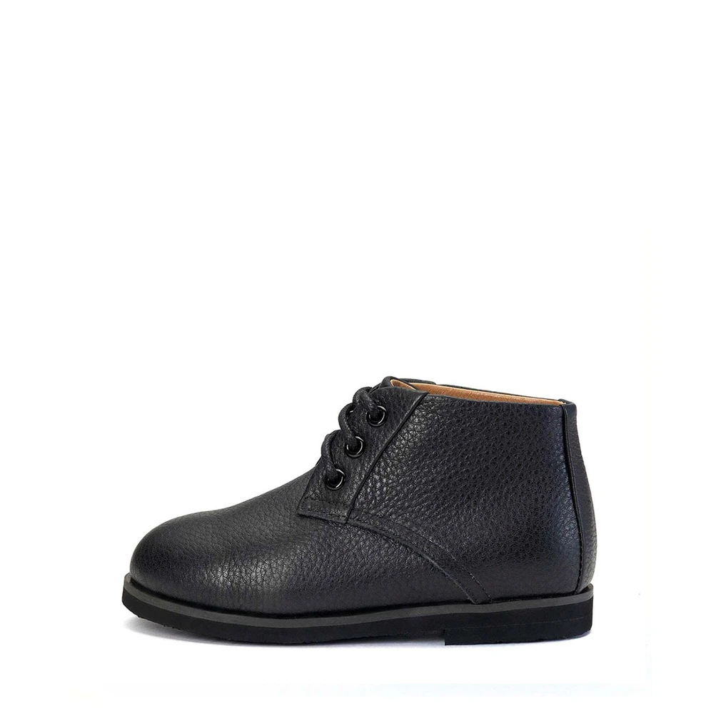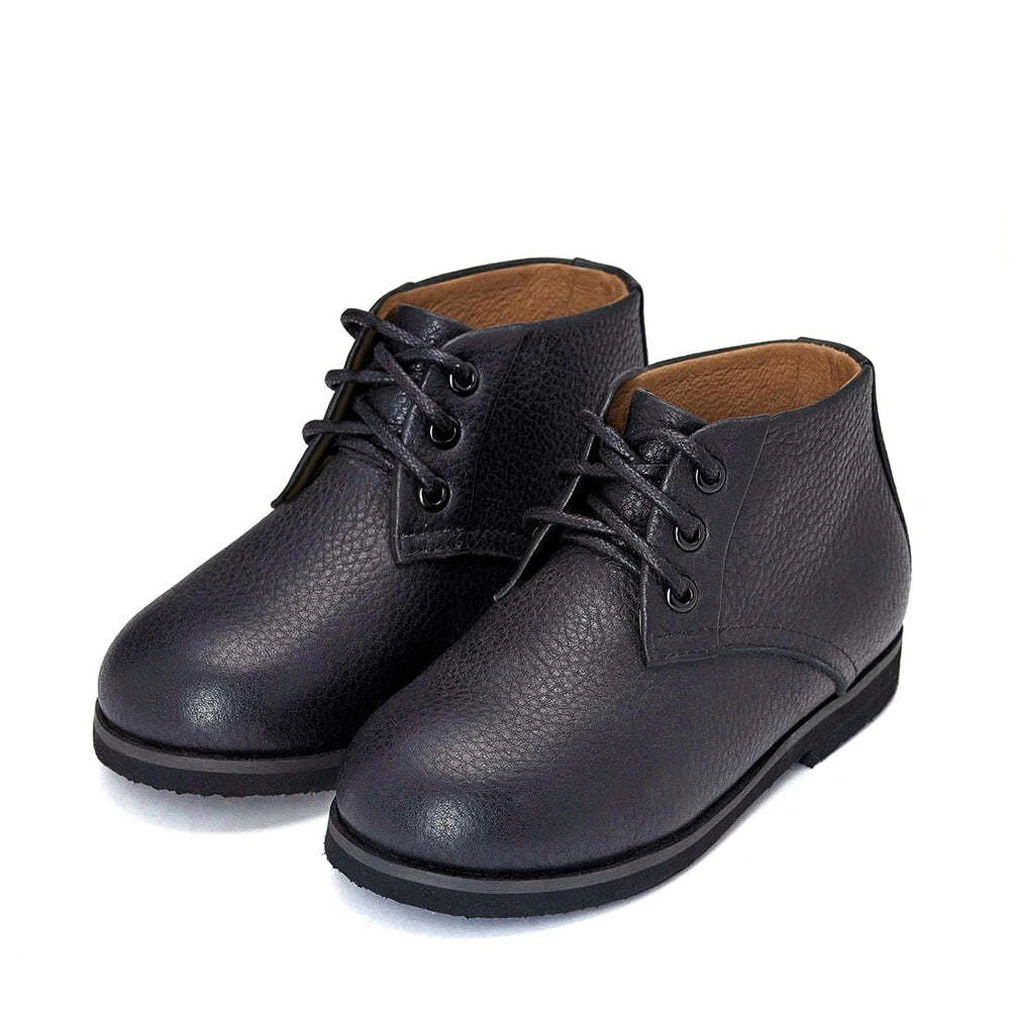 Классическая модель кожаных ботинок с круглым носом и шнуровкой в американском стиле. Очень мягкая фактурная кожа и никаких лишних деталей — ботинки Jack созданы для долгих прогулок и самых классных и подвижных мальчишек.