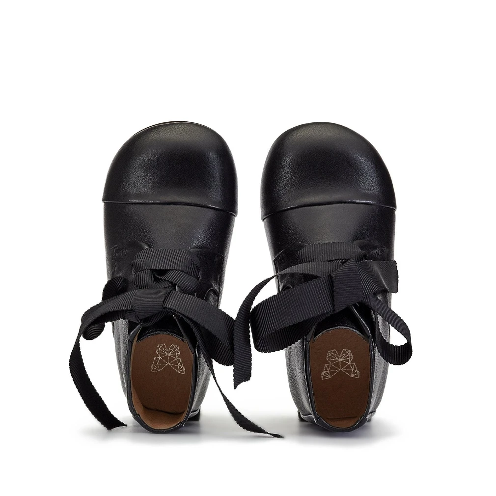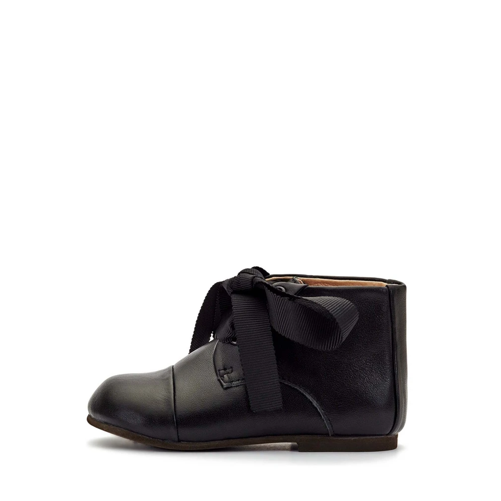 Идеальный выбор для маленькой модницы — это элегантные и утонченные черные ботиночки Jane. Они изготовлены из мягкой натуральной кожи и декорированы изящной черной лентой в цвет обуви. Мы рекомендуем носить их как с джинсами, так и c элегантным платьем и пальто.