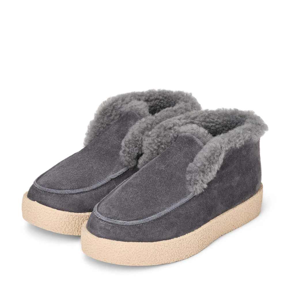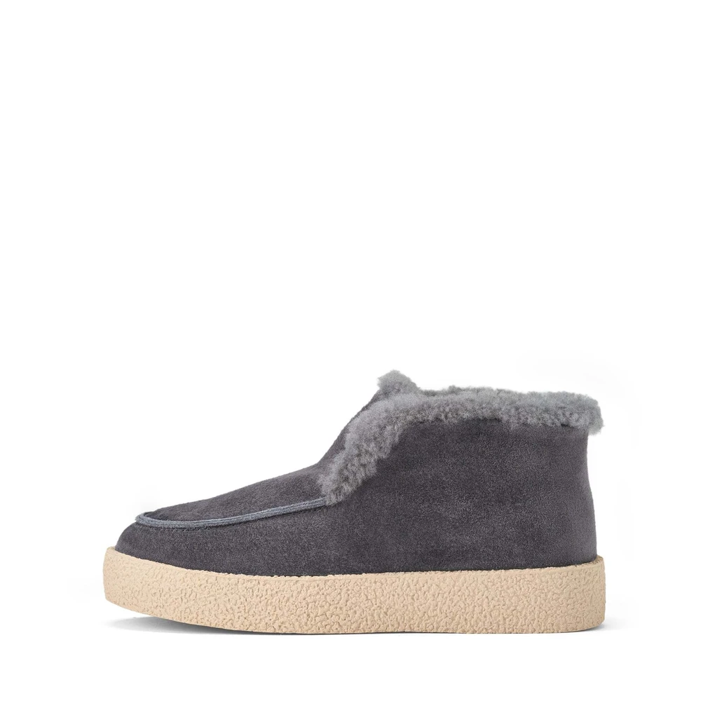 При создании этих ботиночек мы вдохновлялись культовыми моделями высоких меховых лоферов и учли все нюансы необходимые для детей. Мы усилили подошву, сделав ее более высокой, а благодаря фактурной резине, наши ботиночки Jonah не будут скользить на льду. Для большего удобства мы добавили им круглый нос, а для большего тепла - еще более плотный и густой мех.