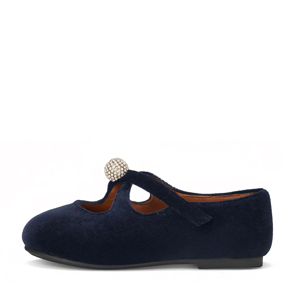 Новое пополнение в коллекции девичьих туфель для особых случаев — тех самых, что хочется сохранить в памяти навсегда. Бархат и оригинальные крестообразные ремешки придают модели Kristen особую эффектность. Ну а главный акцент - декоративная пуговка с сверкающими кристаллами.