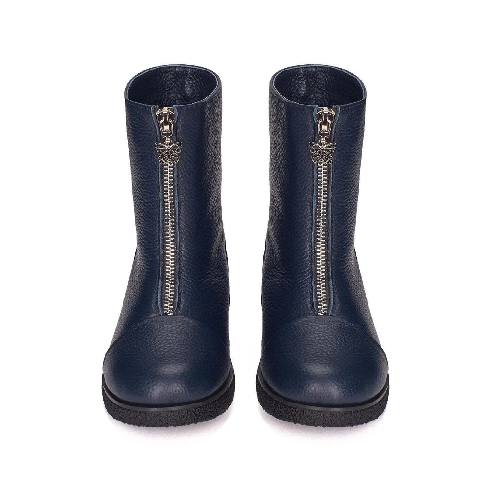 Сделанные из роскошной фактурной натуральной кожи эти синие сапожки Lily никого не оставят равнодушными. Для максимального тепла и комфорта они имеют подкладку и стельку из натуральной шерсти и толстую рифленую подошву. Сапожки Lily декорированы молнией с фирменной серебряной бабочкой Age of Innocence, которая придает сапожкам особое очарование. Сапожки будут идеально смотреться как с платьями, так и с узкими джинсами.