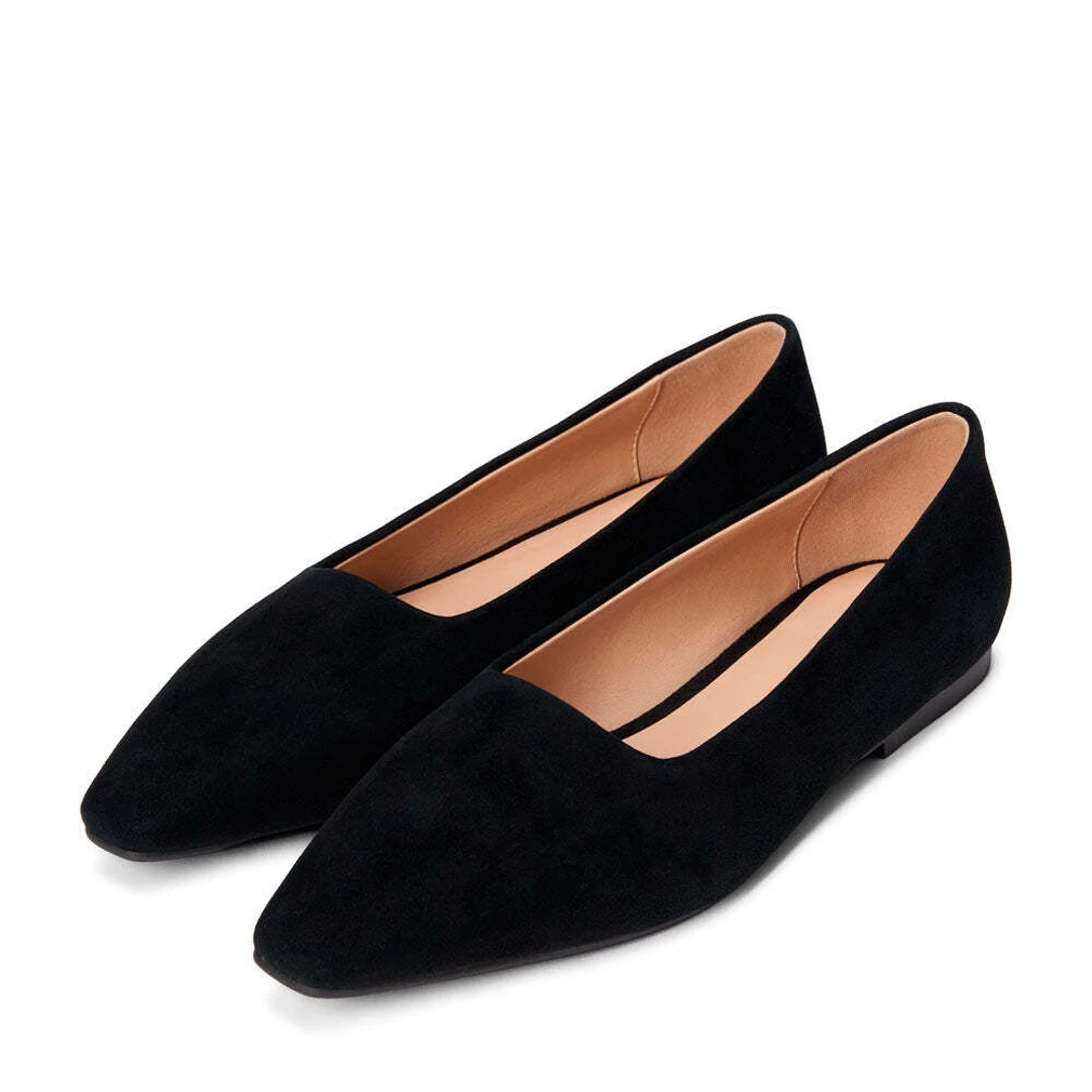 Балетки с удлиненным, но квадратным носиком, повторяющим линию закрытого выреза. Акцент сделан на силуэт и изящную форму, и мы гарантируем, этого более чем достаточно для того, чтобы стать знаковой моделью сезона.