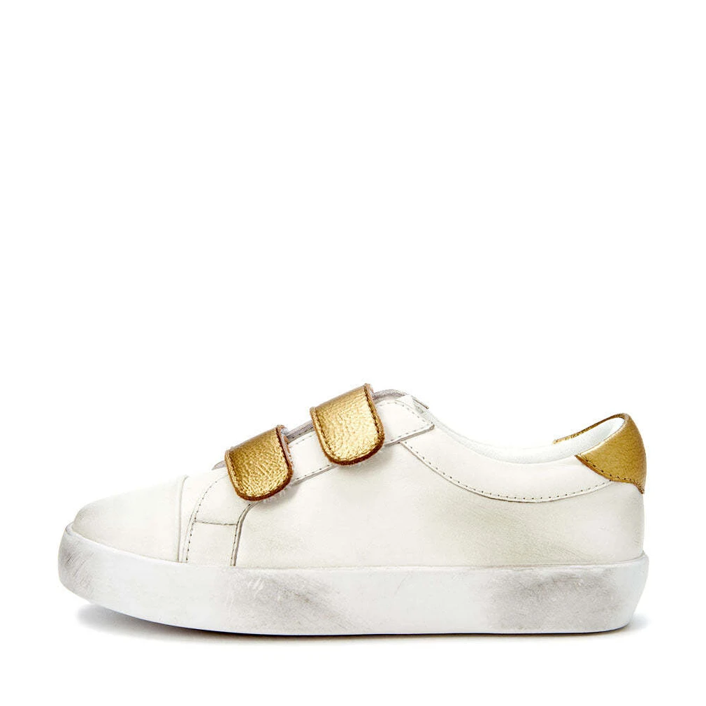 Первые кеды в линейке Age of Innocence с эффектом поношенности, который в последнее время стал настоящим трендом. Кажется, что белоснежная резиновая подошва, как и сами кеды, уже слегка запылилась, на самом же деле — это специальная задумка наших дизайнеров. Кстати такой эффект создаётся вручную и придаёт модели ноту ностальгии по 80-ым годам прошлого века, когда кеды на липучках только-только входили в моду. Ну а золотая кожа — дань эпохе диско, чей задор нам так хочется передать вам.