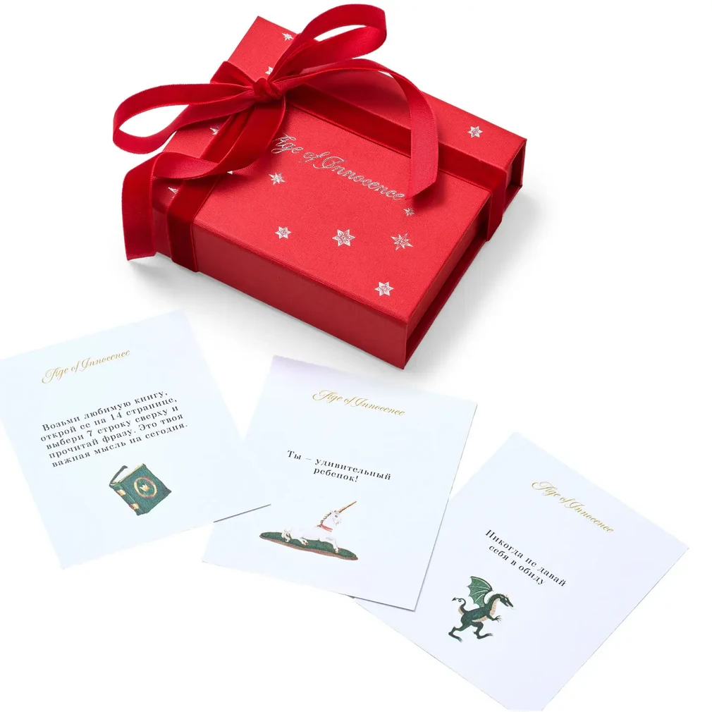 Аффирмационные карты — это короткие фразы, которые могут настроить вас на позитив, добавить веры в себя и изменить ваше эмоциональное состояние. Вы или ваши дети можете использовать их в самых разных ситуациях: вынимайте карту из колоды, создавая мотивацию на день, кладите или вешайте ее на видное место, возвращайтесь к ним в течение дня, находя важные и нужные для вас слова. Каждый подарочный сертификат Age of Innocence наполнен самыми тёплыми эмоциями, и в каждом вы найдёте 30-ую карту с сертификатом на покупку любимой пары туфель.