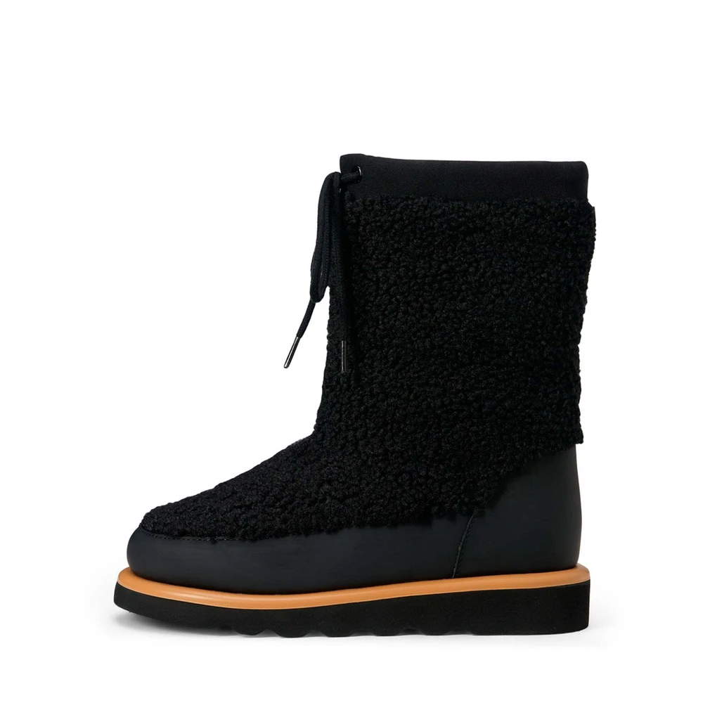 Очередная детально продуманная нами версия из капсулы Apres Ski. Сверху эко мех и водоотталкивающая ткань, внутри подкладка из натуральной шерсти, высокая нескользящая подошва, утягивающий шнурок, защищающий от попадания снега внутрь - мы уверены, что сапоги Rey станут абсолютным бестселлером этой зимы и в городе, и на горнолыжных склонах.