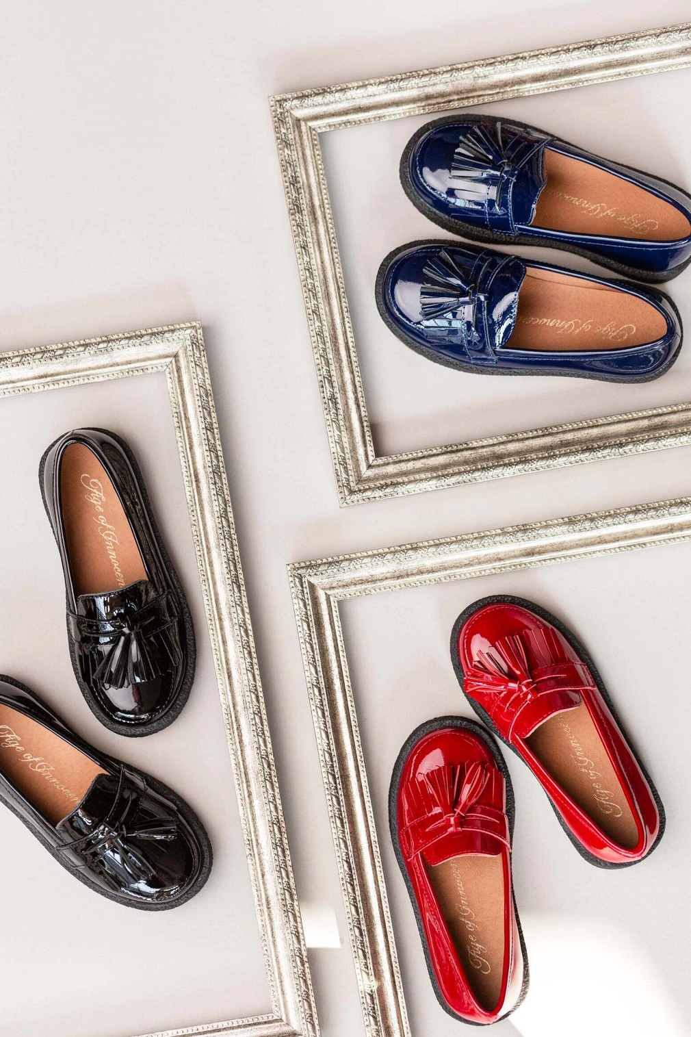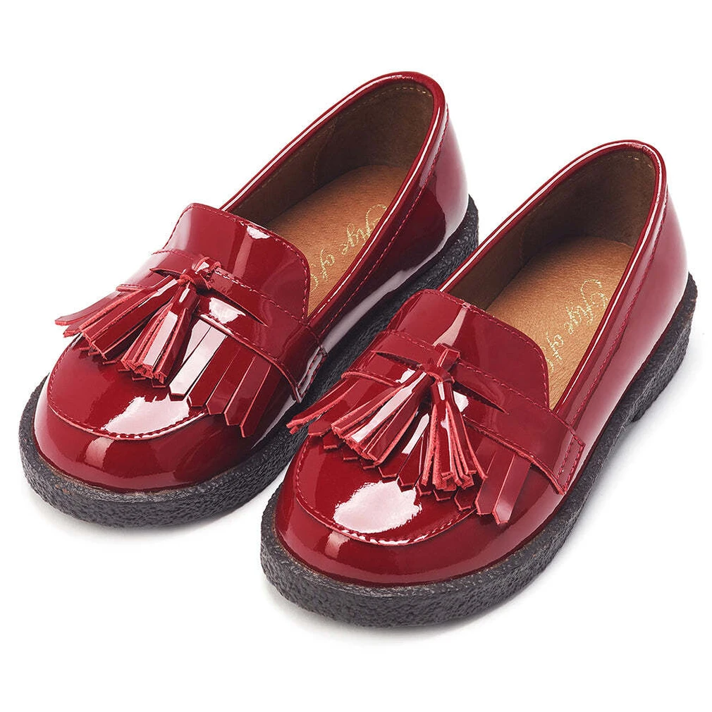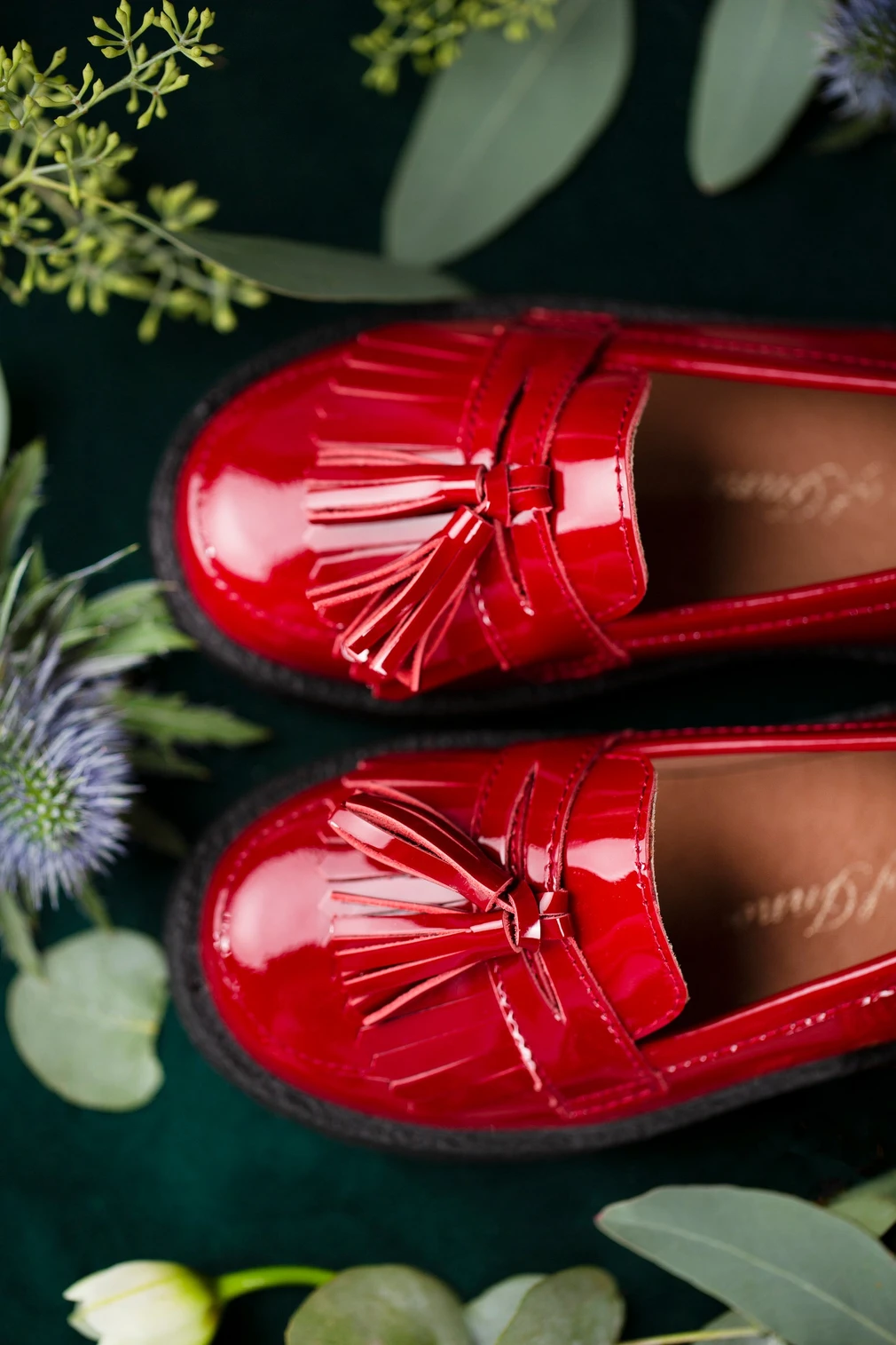 Красные лоферы Vita выполнены из натуральной лакированной кожи. Подкладка и стелька также изготовлены из мягкой натуральной кожи. Лоферы декорированы кисточками с бахромой. Высокая фактурная подошва создает контраст с лакированной поверхностью лоферов. Модель Vita гармонично выглядит с любой школьной формой.