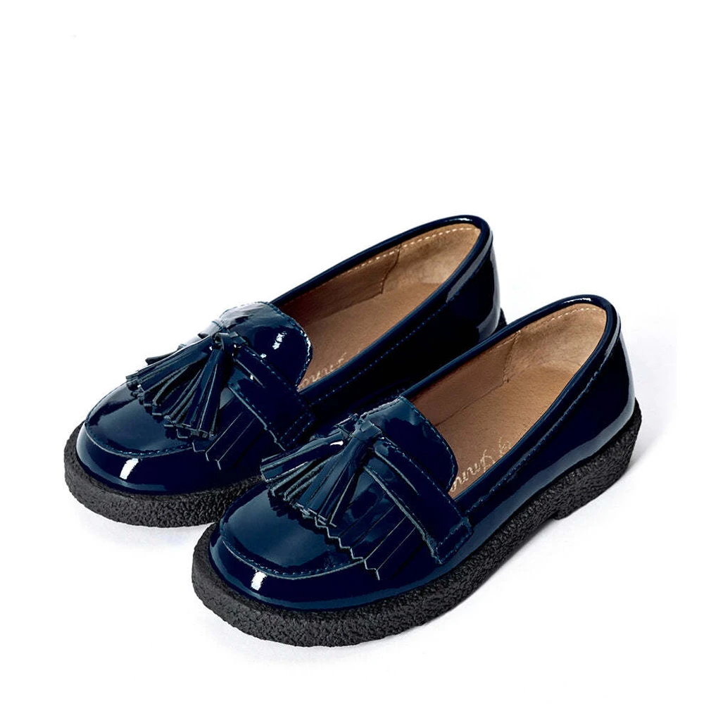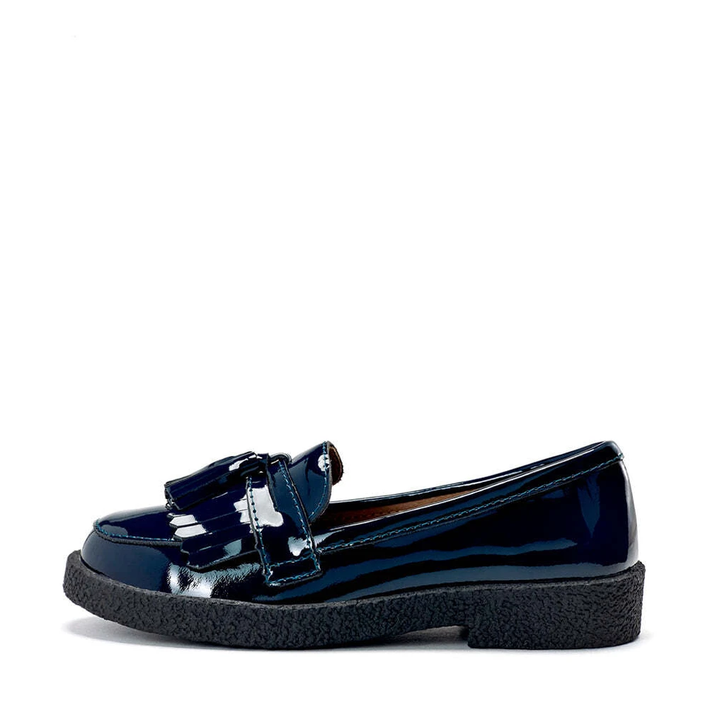 Синие лоферы Vita выполнены из натуральной лакированной кожи. Подкладка и стелька также изготовлены из мягкой натуральной кожи. Лоферы декорированы кисточками с бахромой. Высокая фактурная подошва создает контраст с лакированной поверхностью лоферов. Модель Vita гармонично выглядит с любой школьной формой.