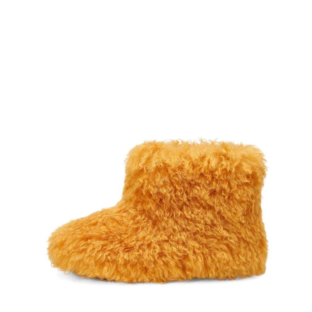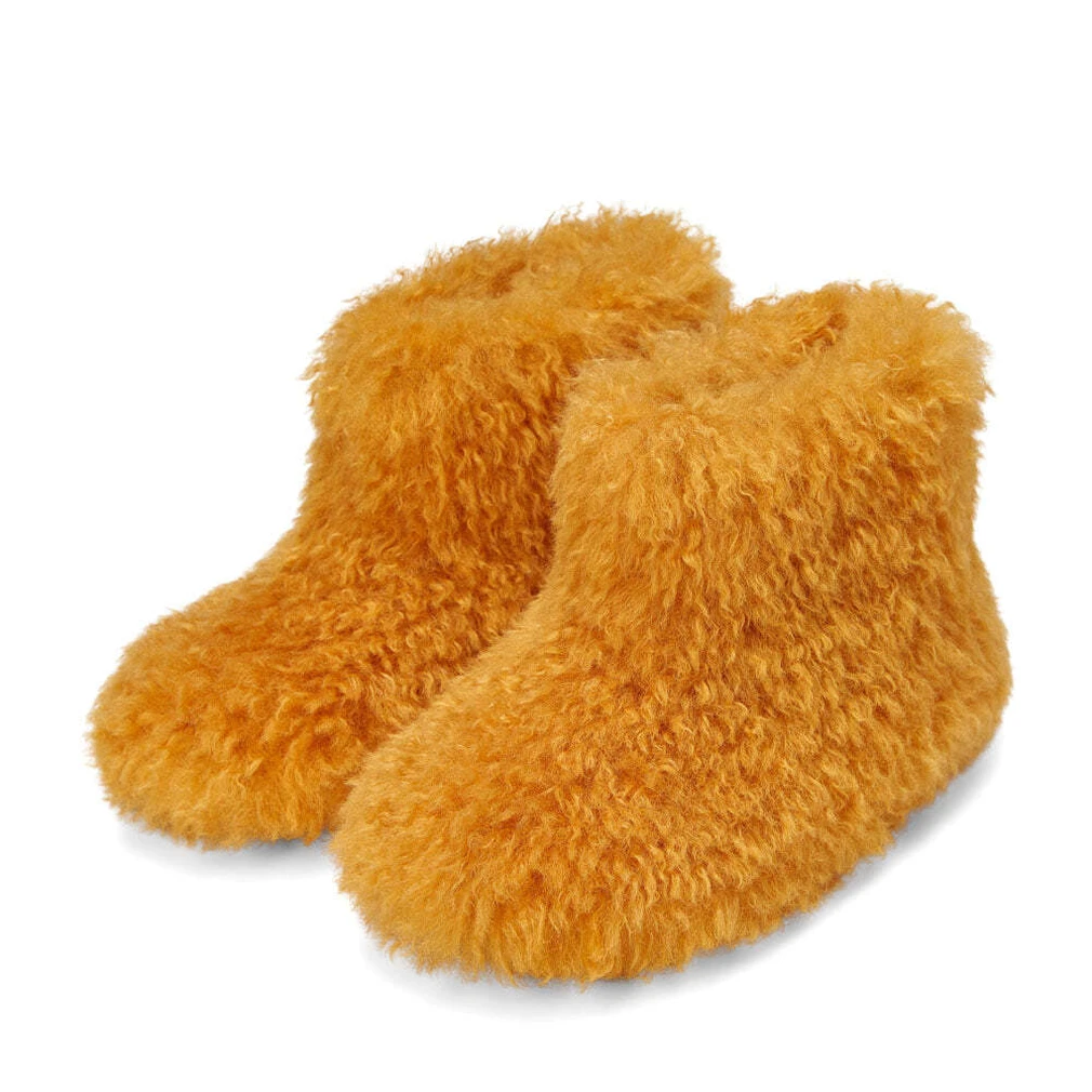 Сапожки Yuki выполнены из пушистого, длинноворсового искусственного меха. Подкладка и стелька изготовлены из натуральной шерсти, которые прекрасно держат тепло. Сапоги легкие и теплые. Прекрасно сочетаются с шерстяными легинсами, свитером и объемной паркой. Если вы планируете поездку в гору — это незаменимый предмет гардероба для аprès-ski.