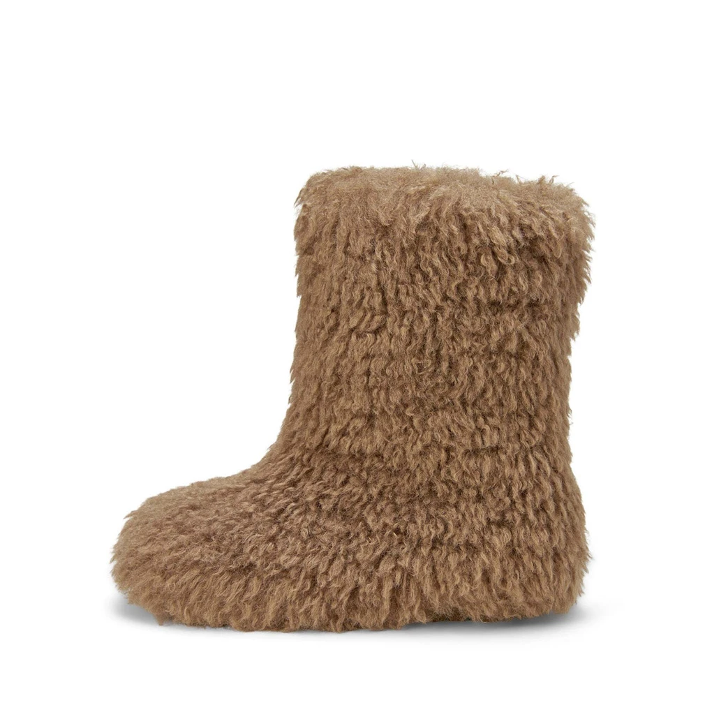 Сапожки Yuki выполнены из пушистого, длинноворсового искусственного меха. Подкладка и стелька изготовлены из натуральной шерсти, которые прекрасно держат тепло. Сапоги легкие и теплые. Прекрасно сочетаются с шерстяными легинсами, свитером и объемной паркой. Если вы планируете поездку в гору — это незаменимый предмет гардероба для аprès-ski. Yuki Midi — средняя по высоте модель в нашей линейке Yuki.