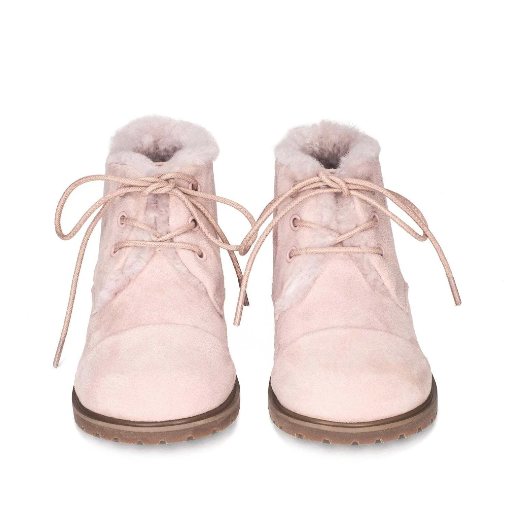 Стильные и удобные нежно-розовые замшевые ботиночки Zoey — наши фавориты. Сделанные из мягкой натуральной замши, со 100% овчиной и с толстой рифленой подошвой ботиночки Zoey идеальны для прогулок. Декорированные изящной шнуровкой в цвет обуви ботиночки чудесно будут смотреться с платьями, юбками и теплыми колготками.